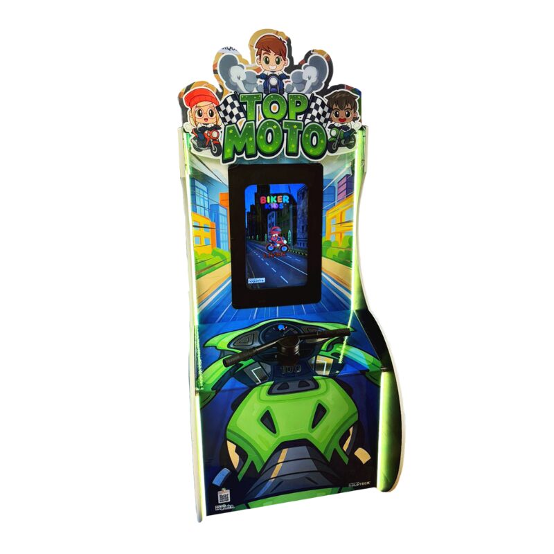O Top Moto é o simulador interativo que coloca a criançada no comando de uma incrível aventura sobre duas rodas!
